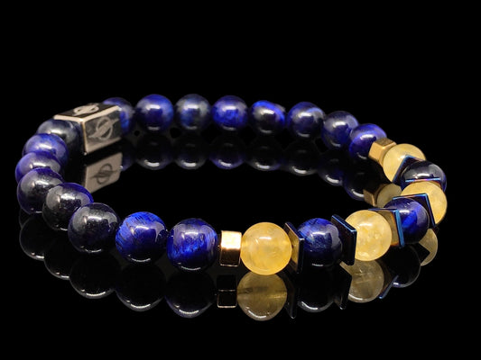 The Active - Pure Blue Tiger Eye and Citrine Men’s Bracelet