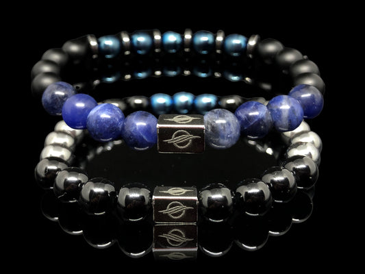 THE APOLLO - Black Onyx, Blue Hematite and Sodalite 2’li Set Men’s Bracelet