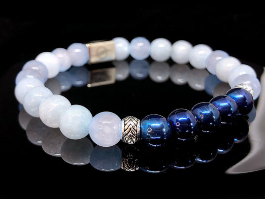 The Blue Grace - Aquamarine and Blue Hematite Men’s Bracelet