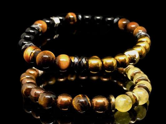 The Royale - Tiger Eye, Citrine, Black Onyx and Hematite Power Set Men’s bracelet