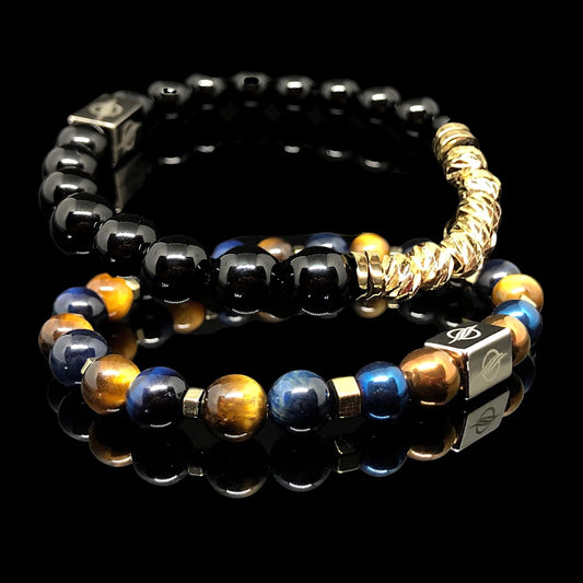 The SUPREME Set - Tiger eye, Black Onyx and Gold Hematite Men’s Bracelet