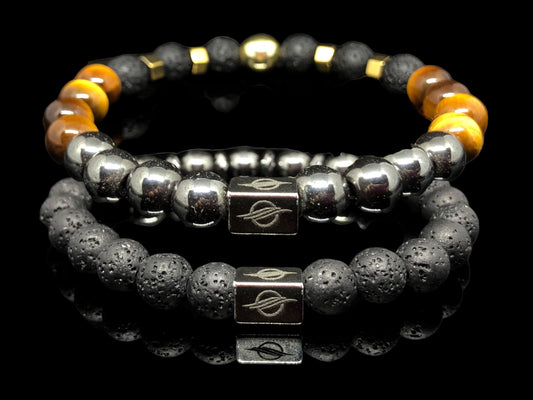 The PRIME - Lava Stone, Tiger Eye and Hematite 2’li Men’s Bracelet