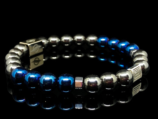 The Knight - Black and Blue Pure Hematite Men’s Bracelet