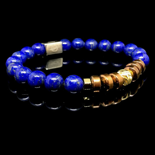 The Elite - Lapis Lazuli with Stainless Steel Bead Men’s Bracelet