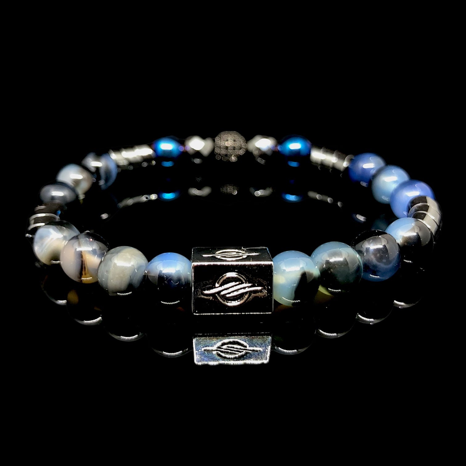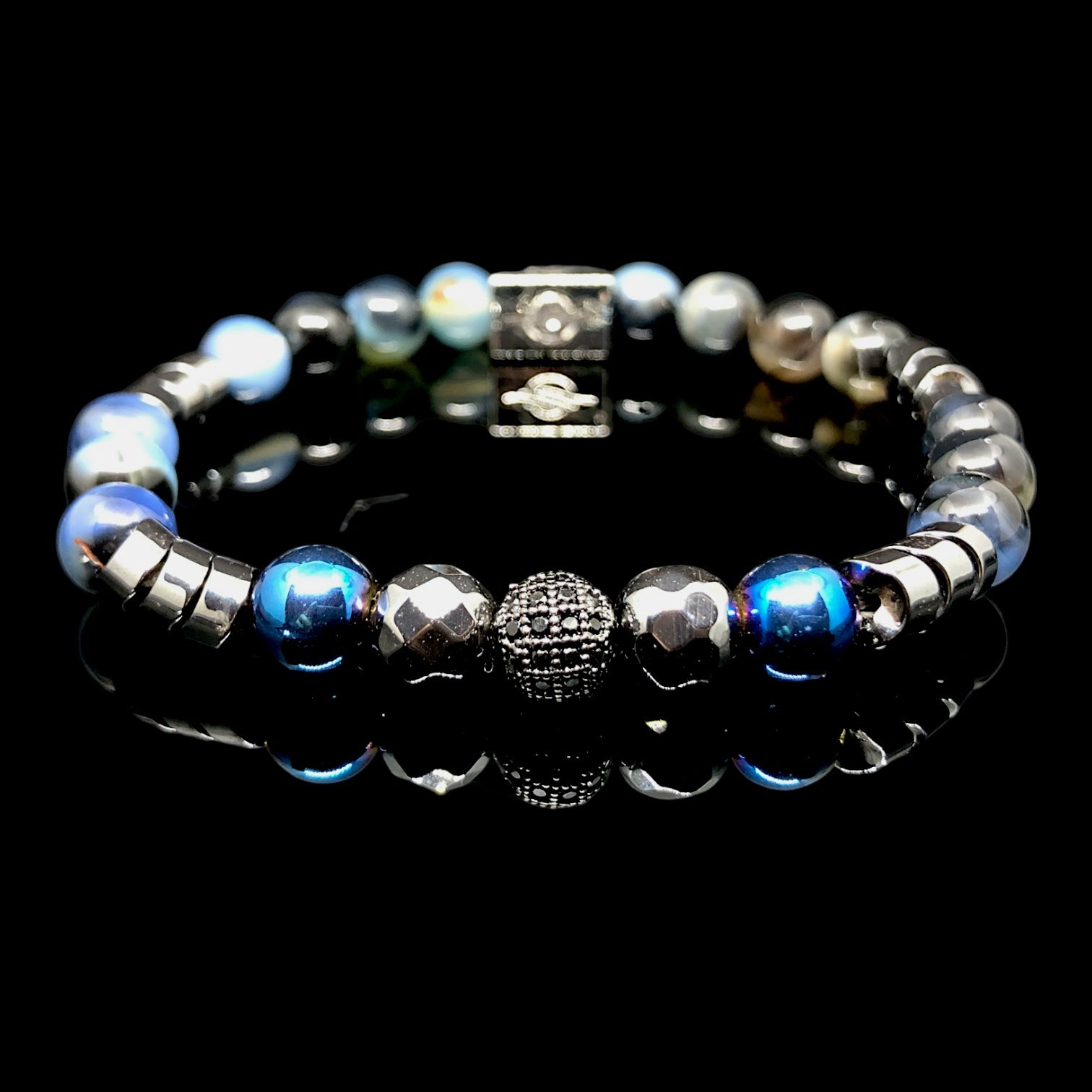 The General - Mavi Akik, Siyah Hematit ve Gümüş Zircon Premium Bileklik