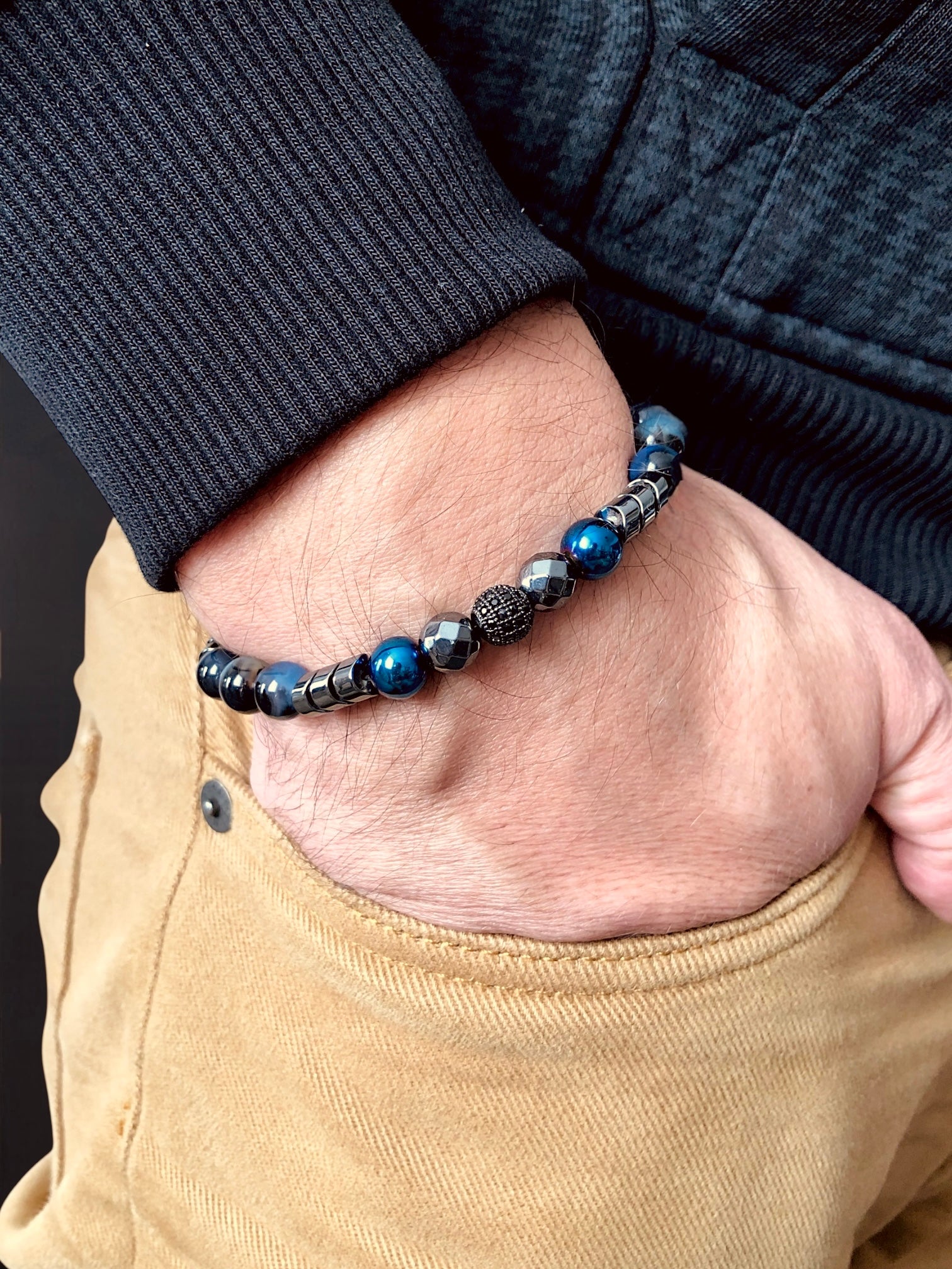 Mavi Akik ile Hematit birlikte kullanıldığında, erkeklere sakinlik ve gücün sağlam bir dengesini sunar. Mavi Akik; duygusal dengeyi, net iletişimi ve iç huzuru desteklemesiyle bilinirken, Hematit topraklanmayı, korunmayı ve zihinsel odaklanmayı destekler. Birlikte stresin azalmasına yardımcı olur, özgüveni artırır ve karar verme becerisini güçlendirir. Bu kombinasyon, stile cesur ve maskülen bir dokunuş katmakla kalmaz; aynı zamanda dayanıklılığı, netliği ve istikrarlı liderlik enerjisini simgeler.